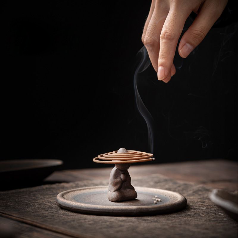 Powder/Seal Incense: Flat-bottomed burner + fir-charcoal ash set (dust-free molding).